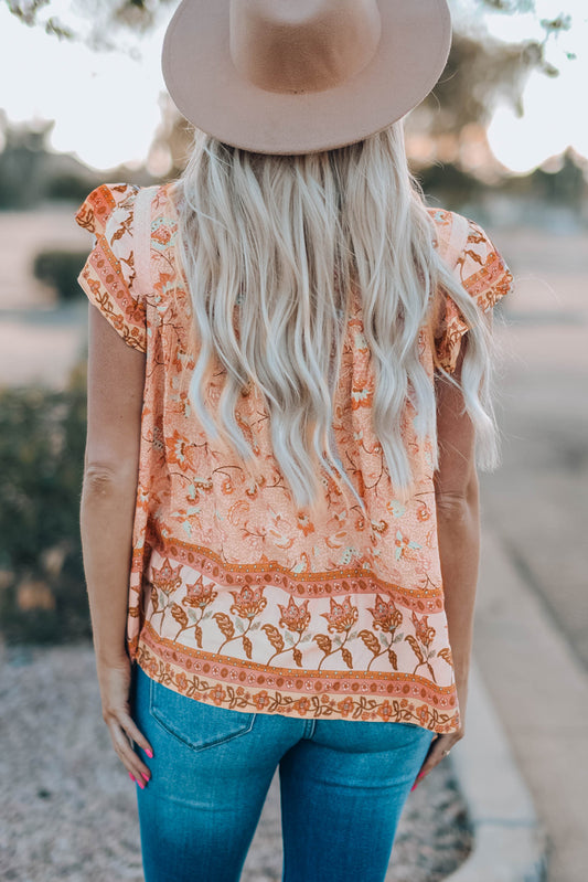 Floral Frill Trim Ruffle Shoulder Sleeveless Top