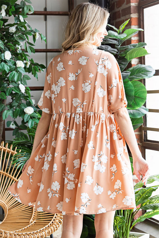 Floral V-Neck Flounce Sleeve Ruffle Hem Dress