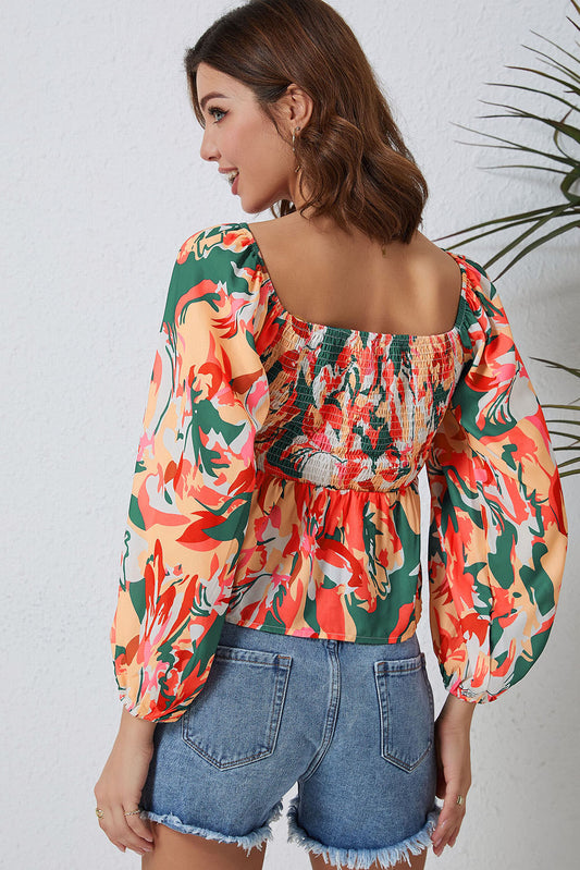 Multicolored Flutter Sleeve Mock Neck Blouse