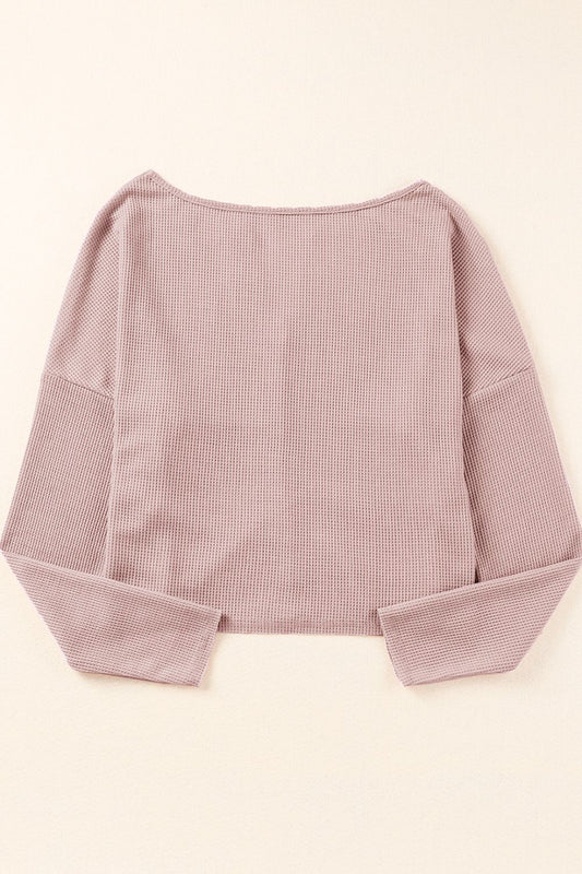 Sold outWaffle-Knit Buttoned Ruffle Hem Top