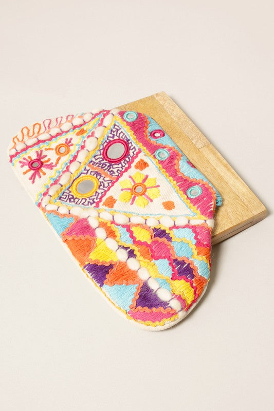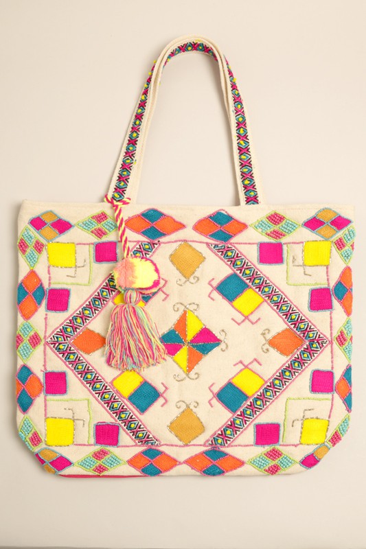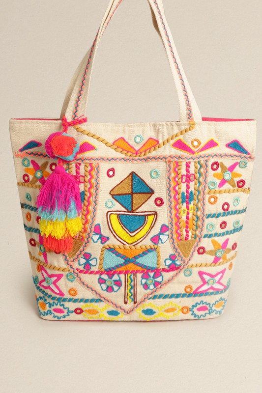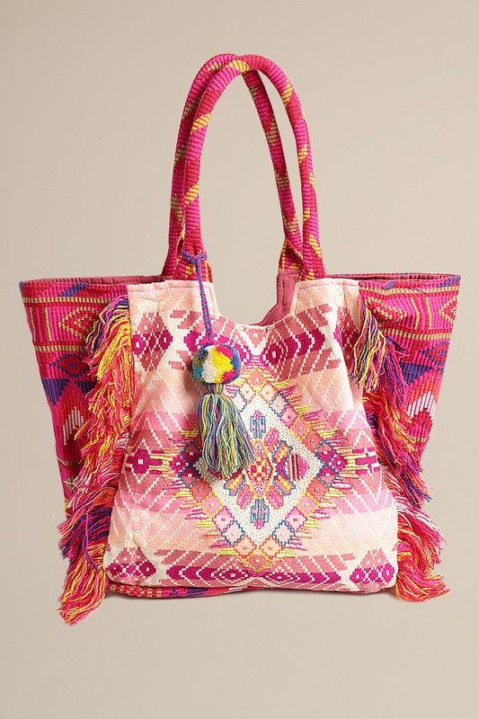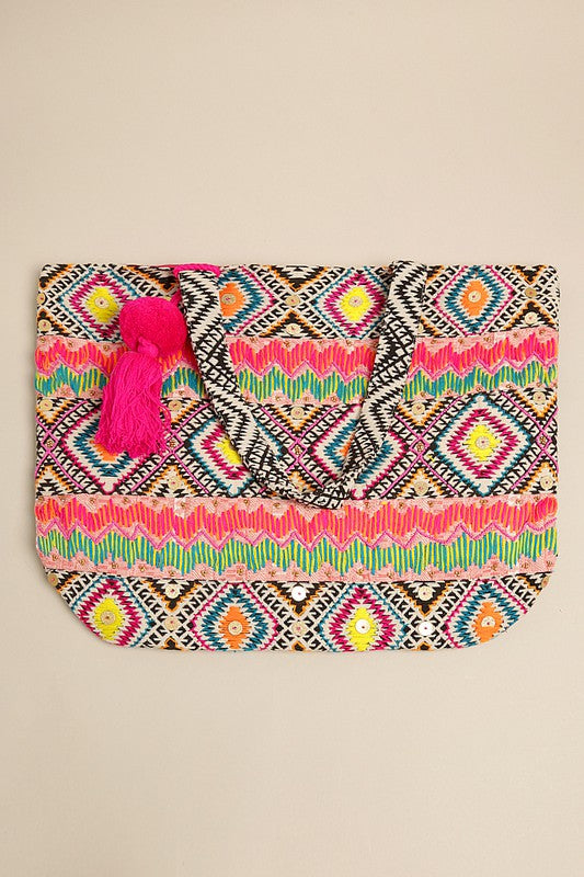 Boho Patterned Pom Pom Tassel Shoulder Bag
